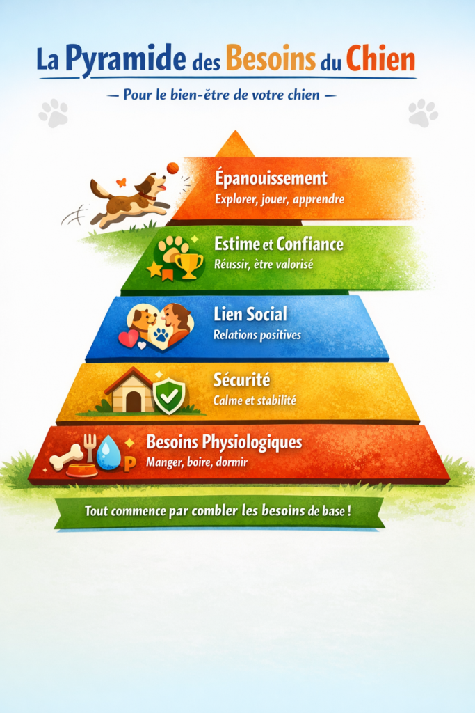Le sommeil fait partie des besoins physiologiques fondamentaux du chien — la base de sa pyramide de Maslow.
